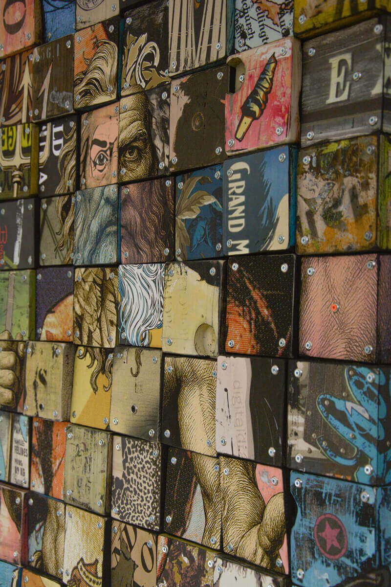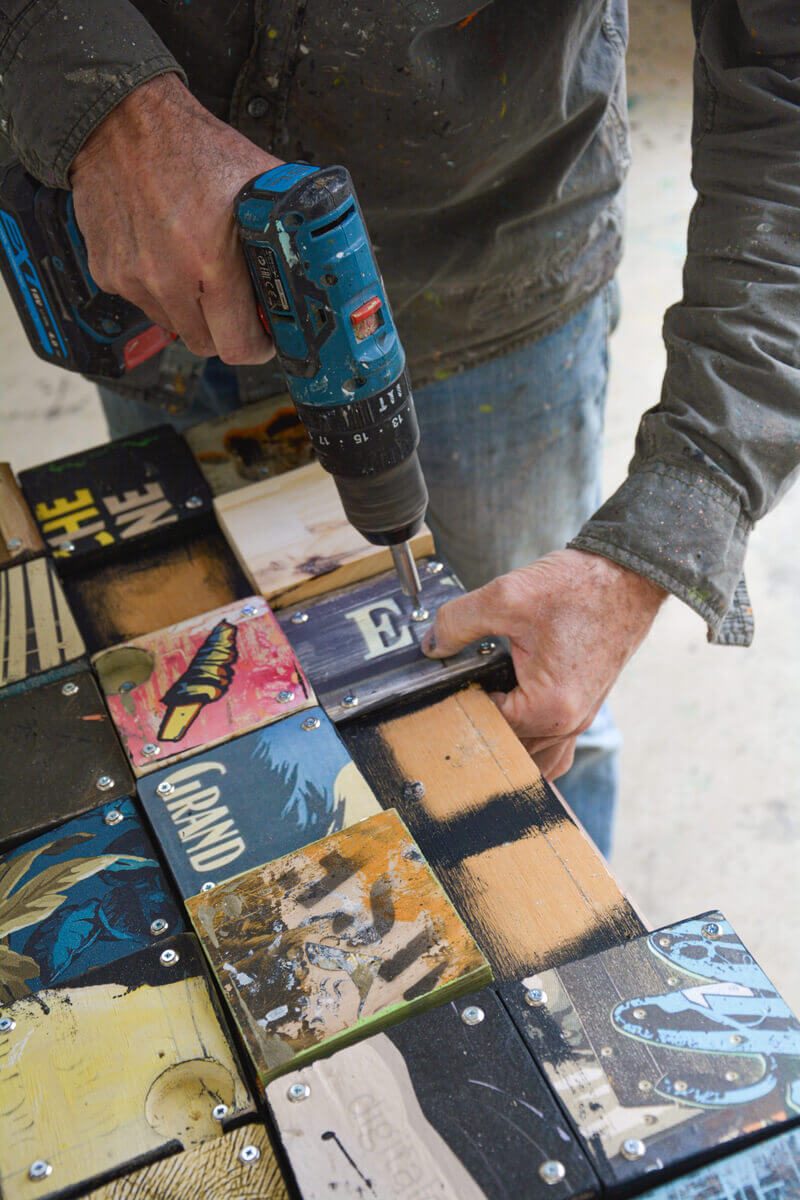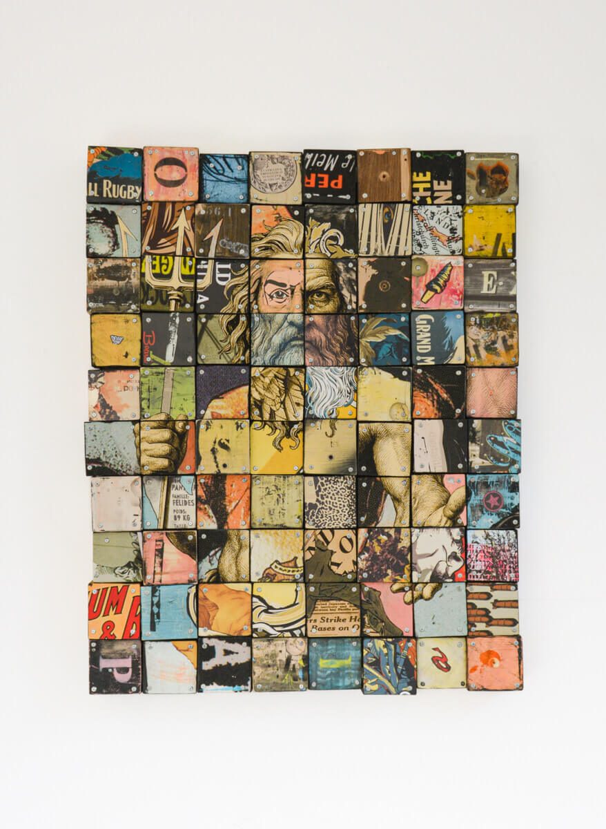Assemblage de bois, collage, peinture acrylique